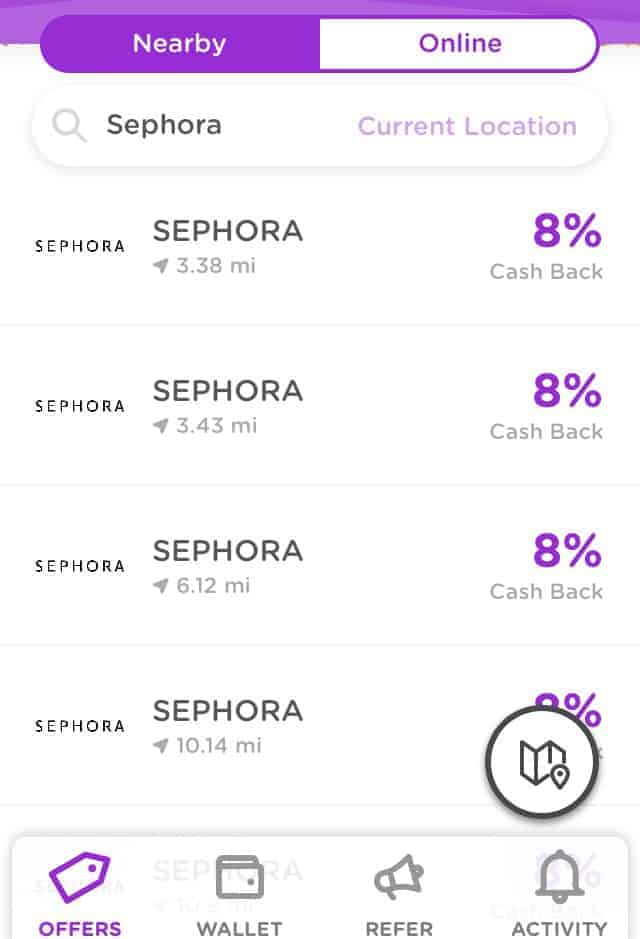 In addition to hotels, Dosh works at many popular, big-name merchants, both online and in-store. As I write this, here are some of the ones I’m seeing on the app: