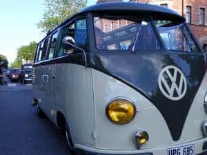 Looks: A dark glass beer bottle with a funky-looking label featuring a drawing of one of those VW classic vans.